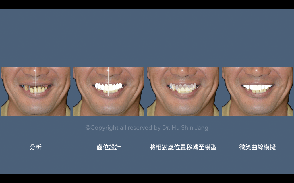 待患者同意治療計劃內容及費用後,我將以下示範案例作為全口重建過程解釋