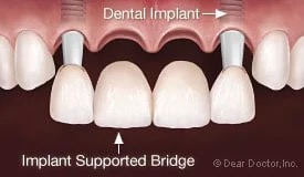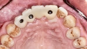 可以用 2 顆植體支撐 3 顆牙橋,安全又省,但前提是咬合力要輕、清潔要能徹底、無牙周疾病…等,始適用!(通常用於前牙)
