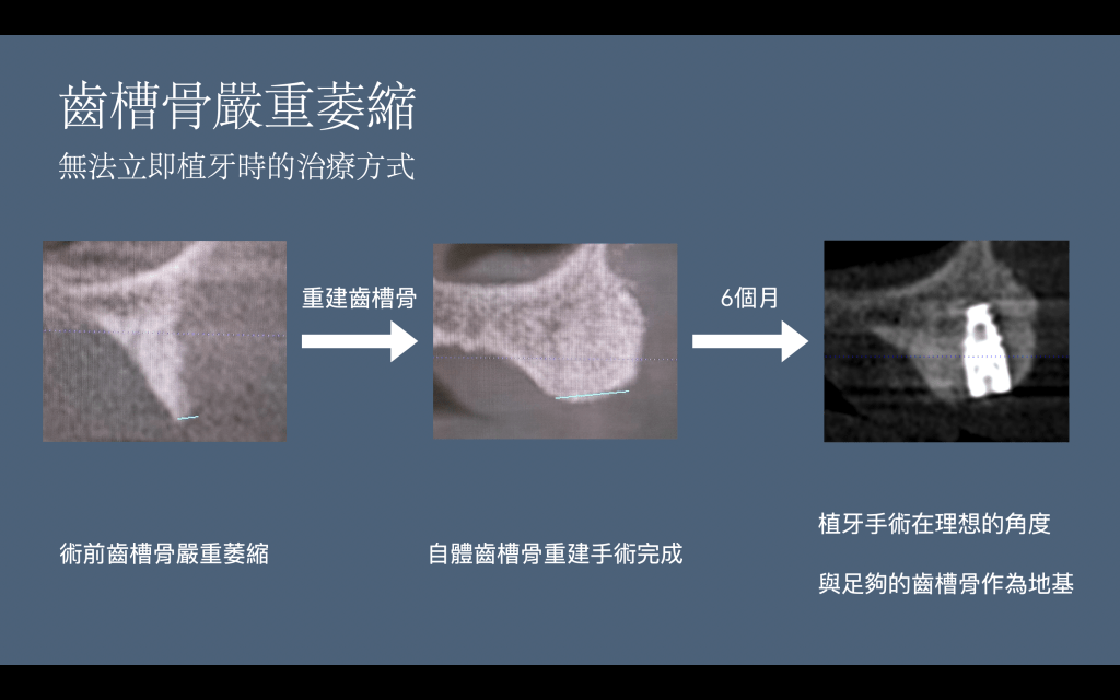 如果牙齒缺損太久、牙周病嚴重或拔牙造成骨壁受損,骨頭就會變得不足。