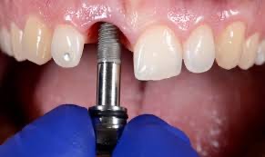 • 植入人工牙根:將植體放入缺牙位置的牙骨中。