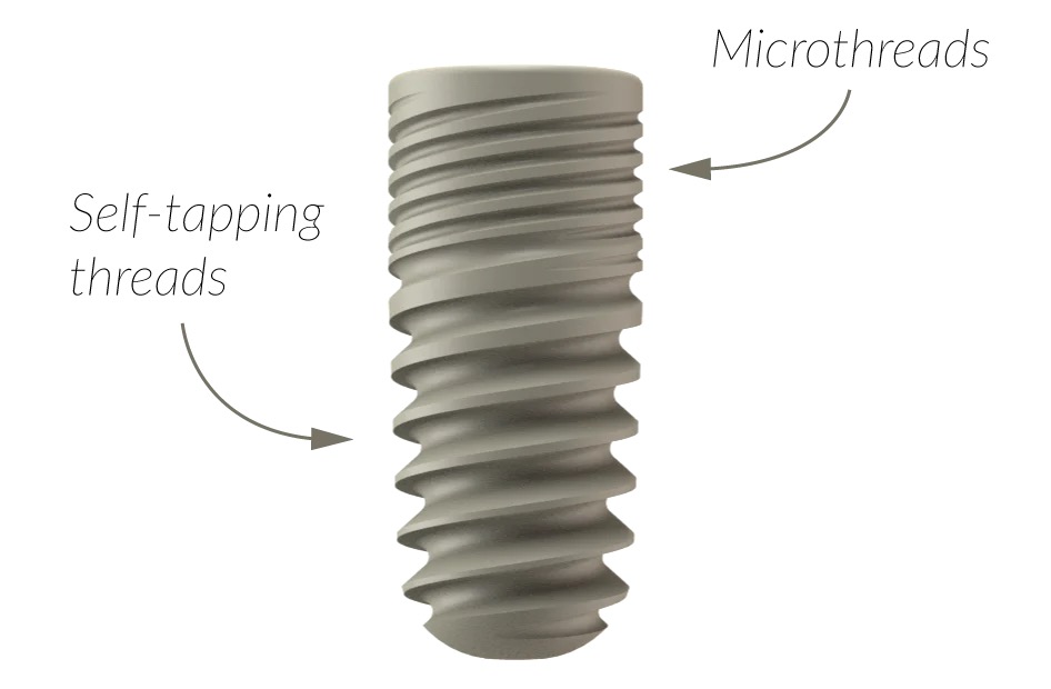 🔩 粗螺紋──適合較軟、較鬆的骨頭(例如上顎後牙)