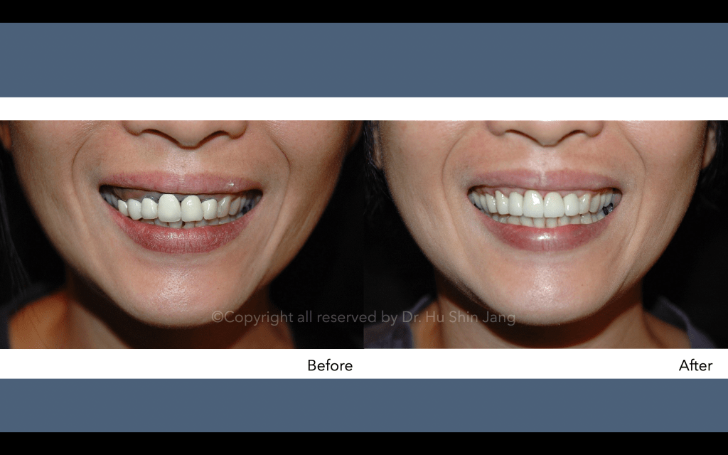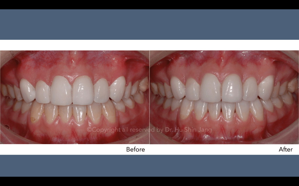 • 有做過部分貼片、部分全瓷冠(材質不同會呈現色差)