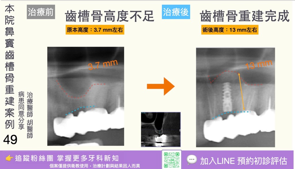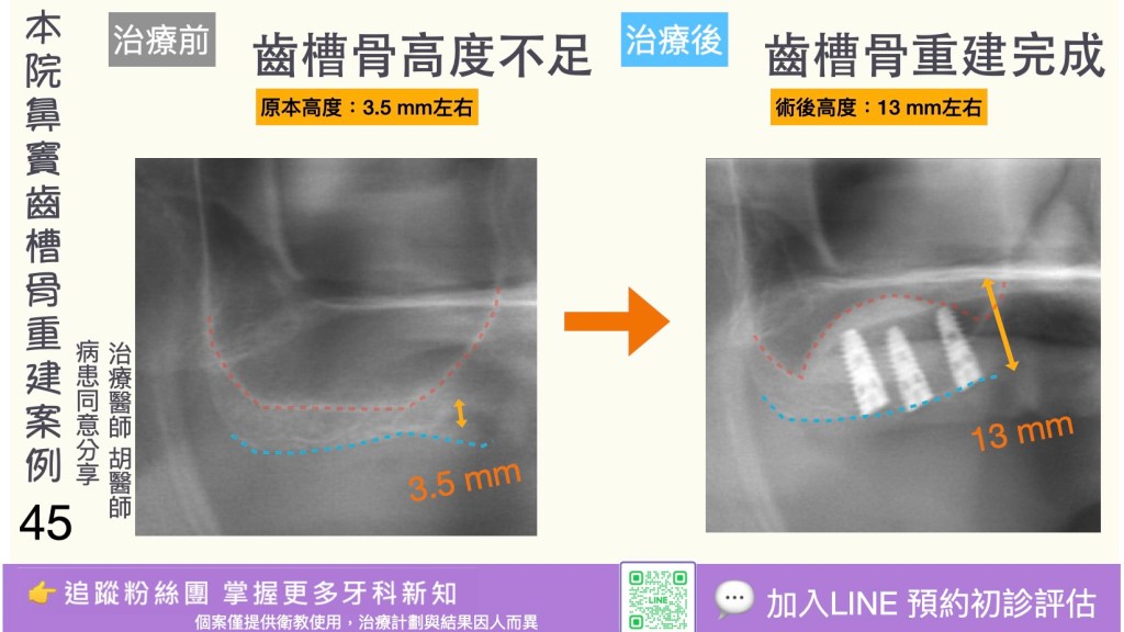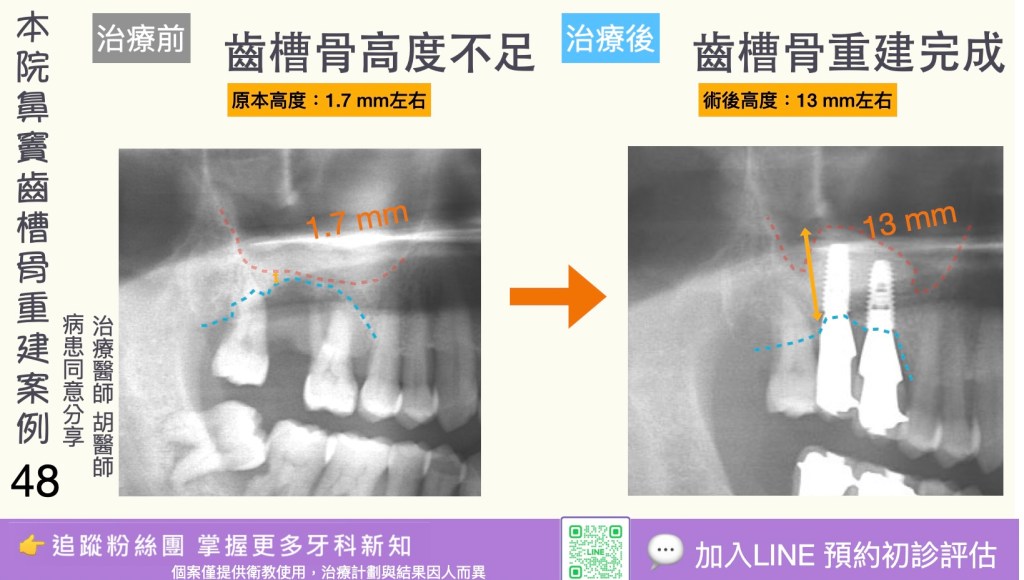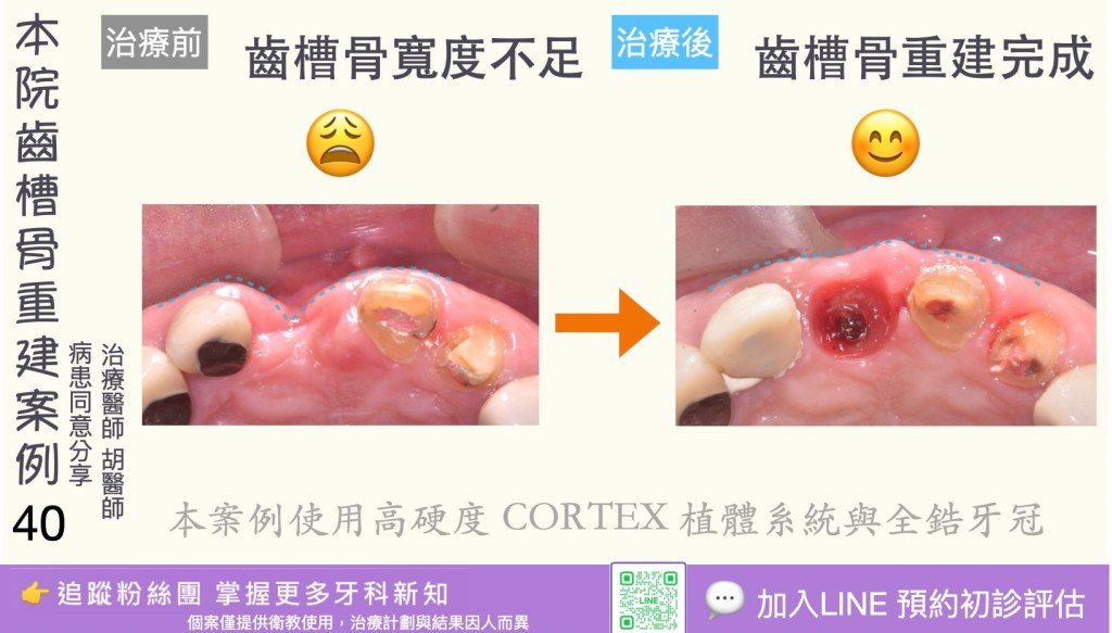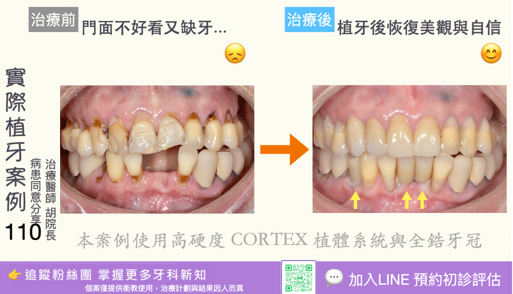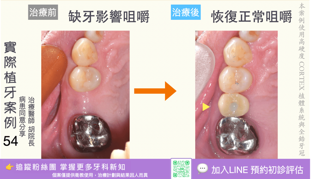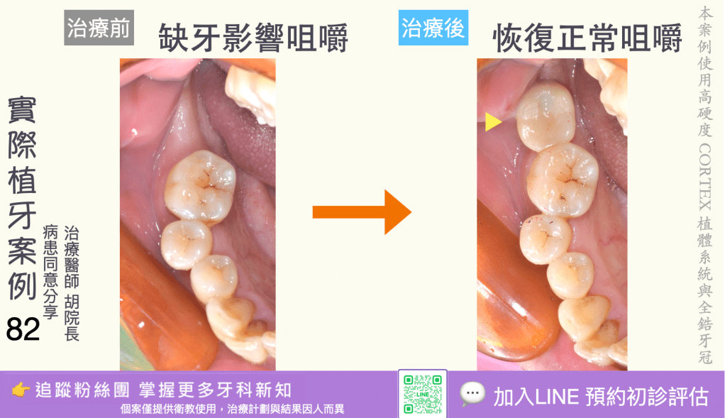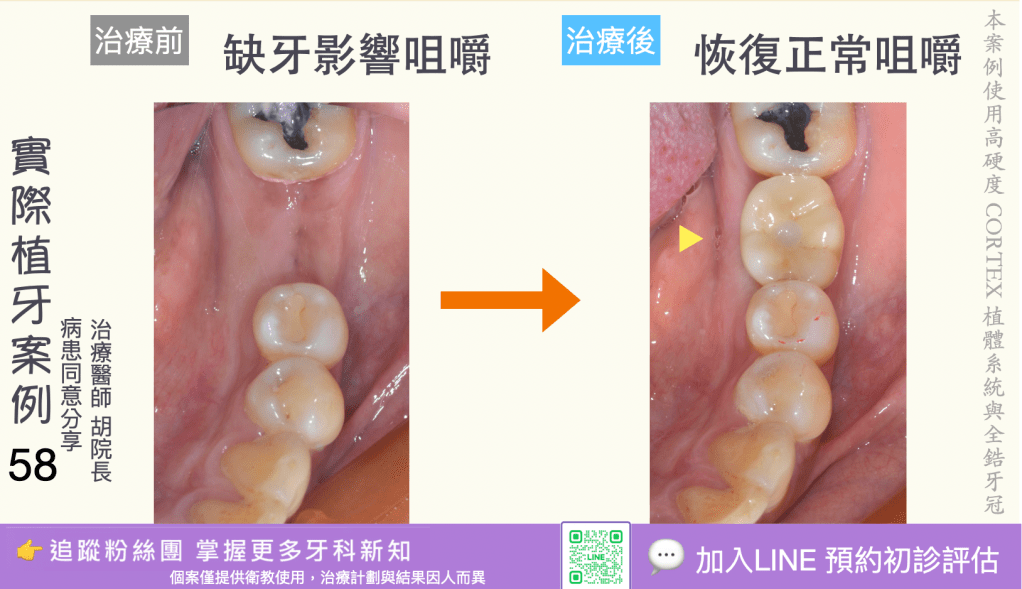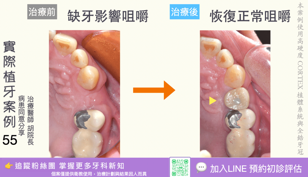 3. 時間較長:完整療程(評估→植體植入→癒合→修復)可能需數月(若需骨增量或分階段治療則更久)。