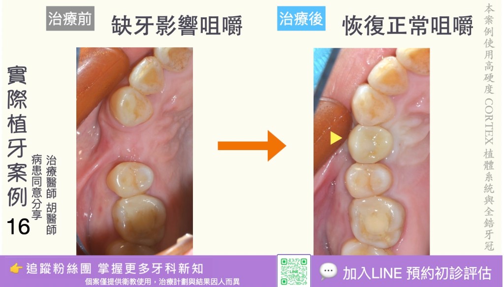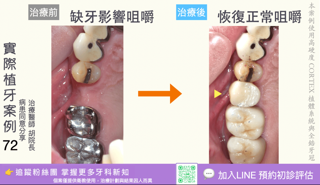 1. 功能恢復:咀嚼效率高,接近自然牙,能改善營養攝取與生活品質。